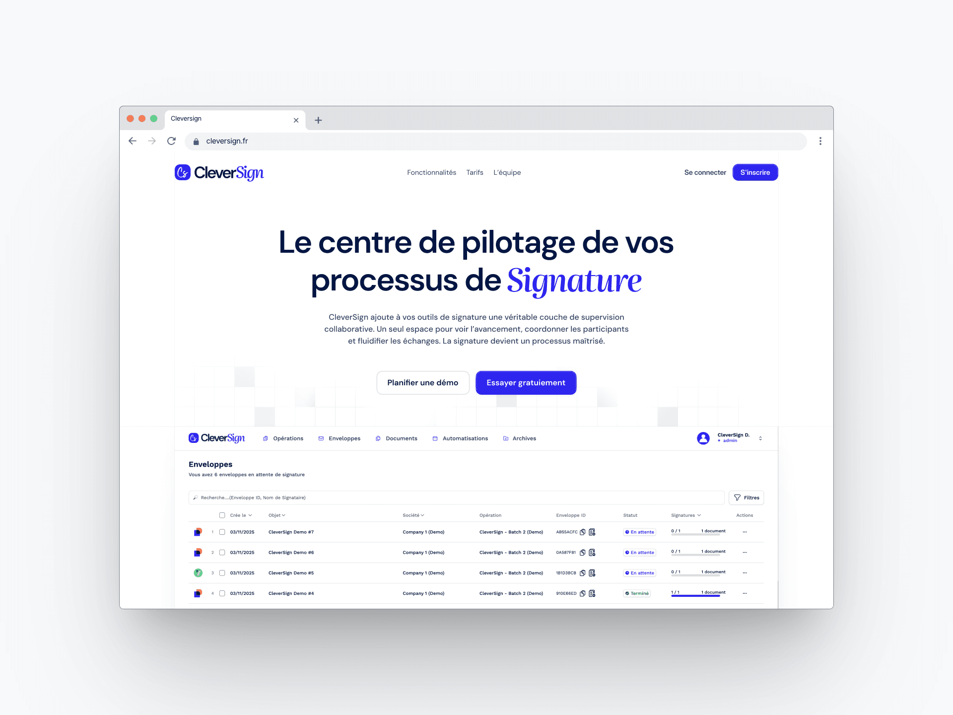 CleverSign is a platform that centralizes and manages electronic signature processes by integrating with and enhancing existing signature tools like DocuSign, Yousign, and Adobe Sign.