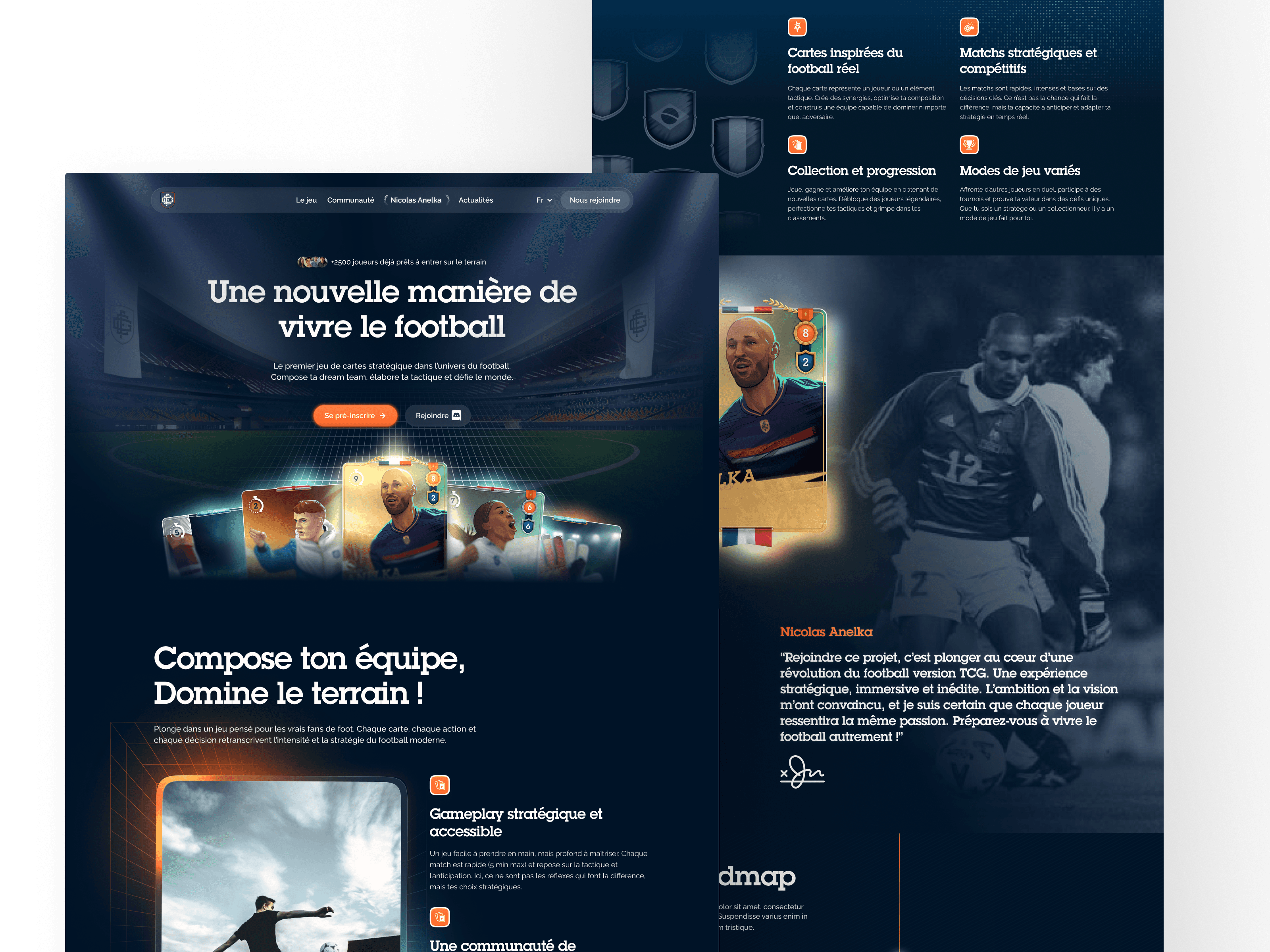 For the pre-registration launch, the founders wanted to modernize their brand and establish a strong identity by showcasing their assets, such as the cards, and explaining the game. I developed this brand with a modern football aesthetic while creating a digital environment.